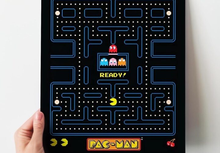 This 11×14 unframed Pac-Man print nails the nostalgia. The blue maze, the ghosts, and that bold “READY!” screen pop on premium Fuji Crystal Archive paper. It’s a retro pick-me-up for a man cave or bedroom. However, buyer beware: it’s smaller than a typical poster and comes unframed. Consequently, casual fans may enjoy it as a study aid or décor, while collectors expecting a large centerpiece may be disappointed.