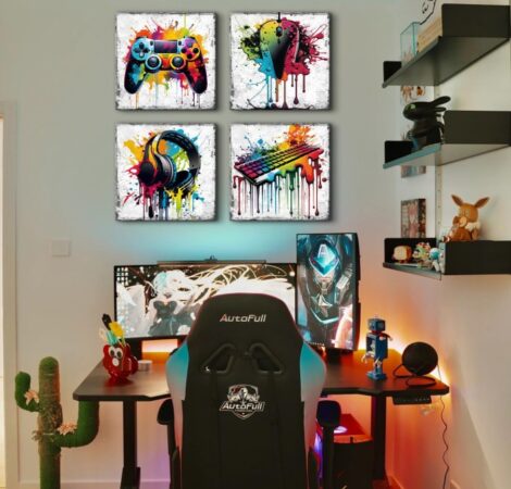 Get ready to level up your battlestation with the YOOOAHU Game Wall Decor set. At only $19.99 and backed by a 4.8-star rating from 399 reviews, this four-piece 12×12″ canvas collection instantly upgrades your space. Not only does each piece showcase vibrant designs of a gamepad, headset, keyboard, and mouse, but also the neon colors create an immersive glow that complements RGB lighting setups. Moreover, the durable, waterproof canvas ensures your art will last through countless late-night sessions. As a result, your gaming zone will not just look sharper—it will feel more like a personalized command center ready for action.